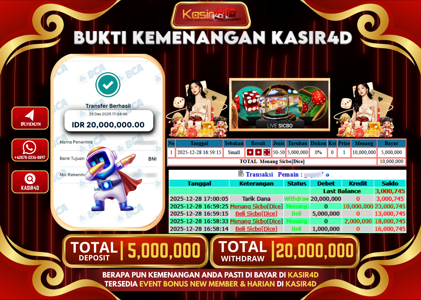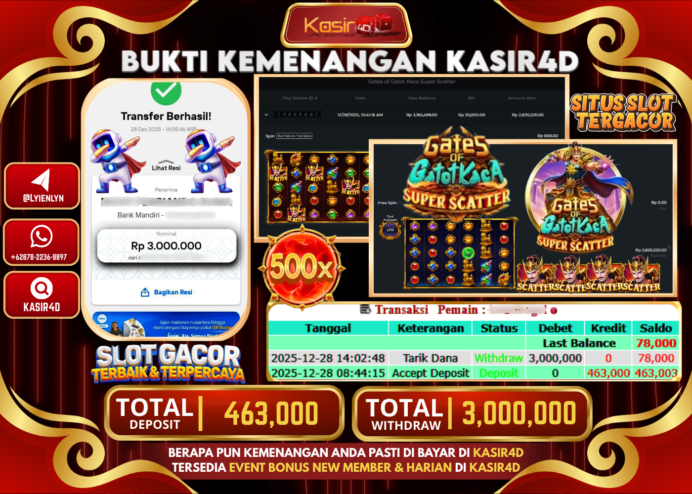 KASIR4D, Selamat Kepada User Id : GO ***** GO67 Atas Withdraw Hari ini Tgl 28 Desember 2025Rp. 20.000.000 Di LIVE GAME…