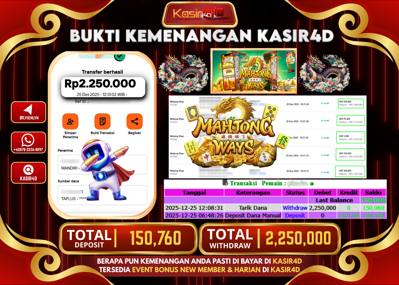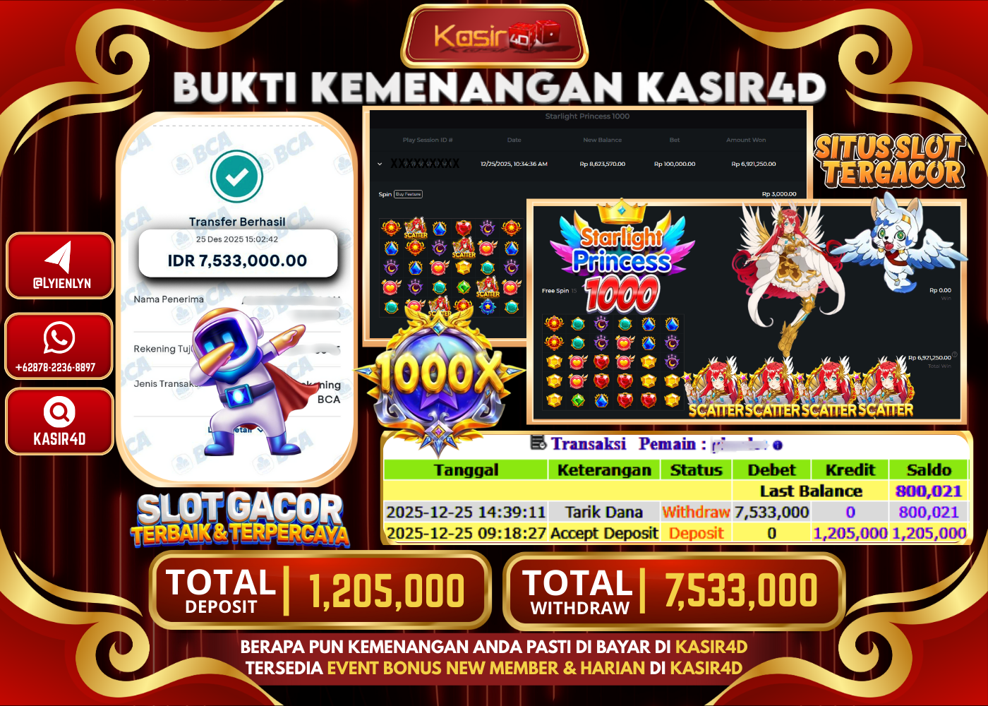 KASIR4D, Selamat Kepada User Id : BA***** MAJA Atas Withdraw Hari ini Tgl 25 Desember 2025Rp. 7.533.000 Di Game PRAGMATIC PLAY…