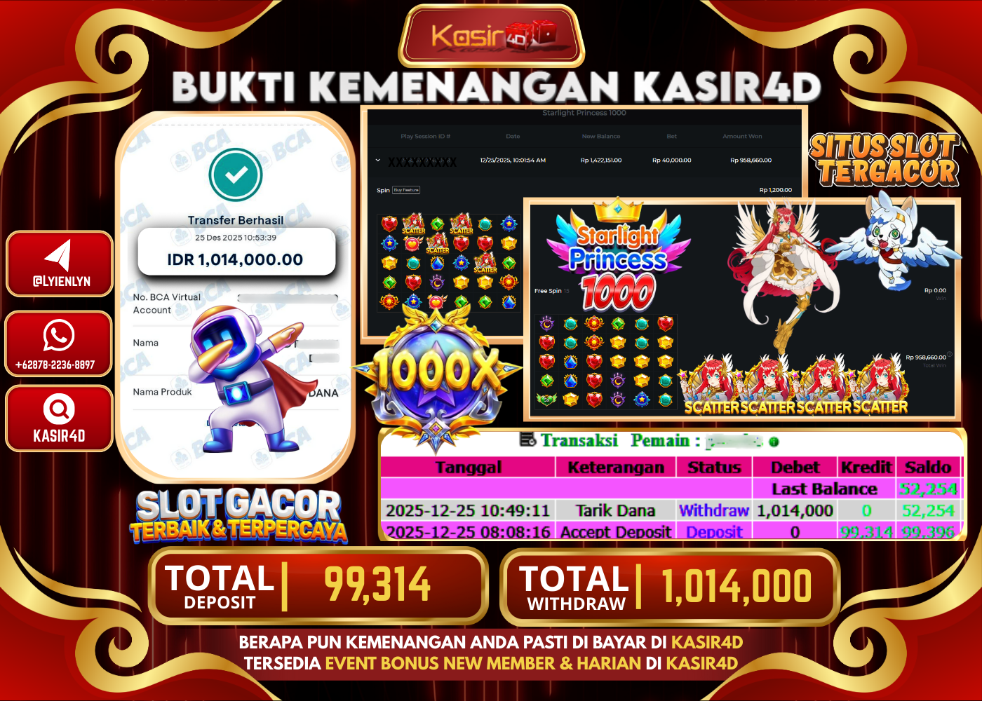 KASIR4D, Selamat Kepada User Id : NGA ***** NG88 Atas Withdraw Hari ini Tgl 25 Desember 2025Rp. 1.014.000 Di Game PRAGMATIC…