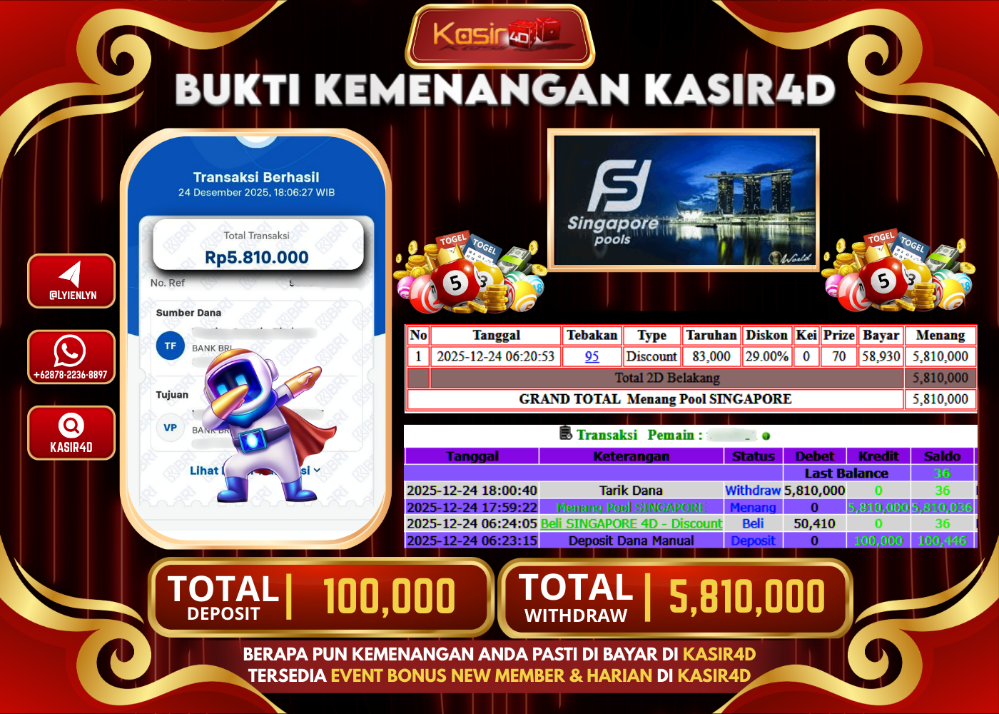 KASIR4D, Selamat Kepada User Id : VA ***** R1111 Atas Withdraw Hari ini Tgl 24 Desember 2025Rp. 5.810.000 Di Game PASARAN…