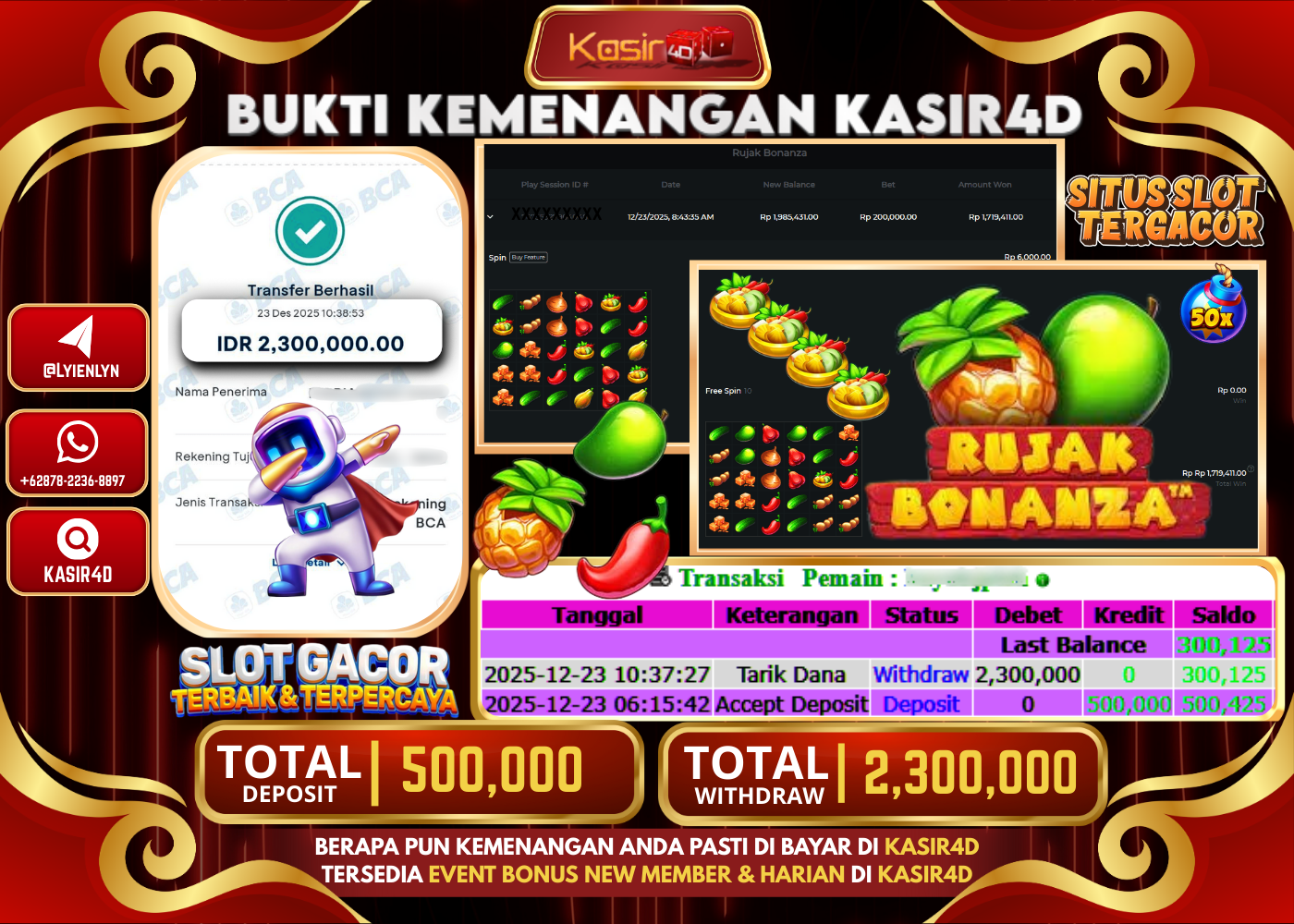 KASIR4D, Selamat Kepada User Id : KU ***** PLAH Atas Withdraw Hari ini Tgl 23 Desember 2025Rp. 2.300.000 Di Game PRAGMATIC…