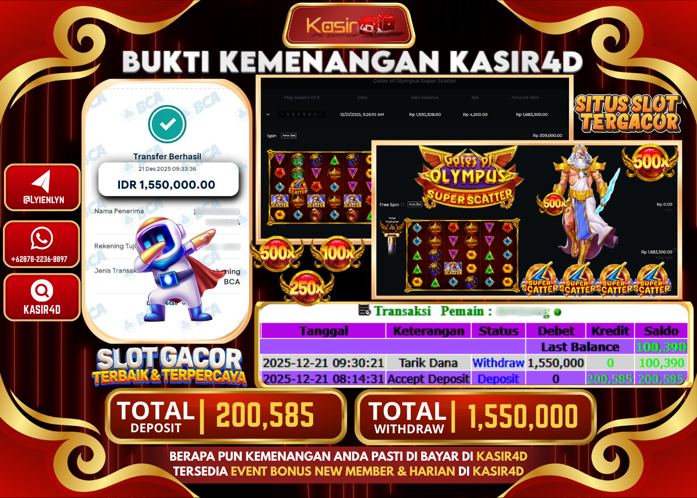 KASIR4D, Selamat Kepada User Id : DE ***** CANG Atas Withdraw Hari ini Tgl 21 Desember 2025Rp. 1.550.000 Di Game PRAGMATIC…