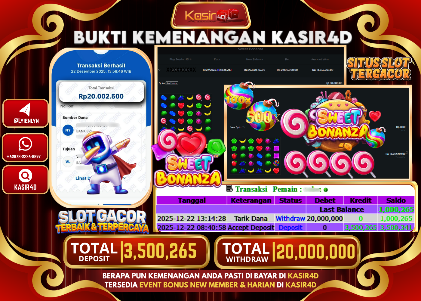 KASIR4D, Selamat Kepada User Id : VO ***** LEN Atas Withdraw Hari ini Tgl 22 Desember 2025Rp. 20.000.000 Di Game PRAGMATIC…