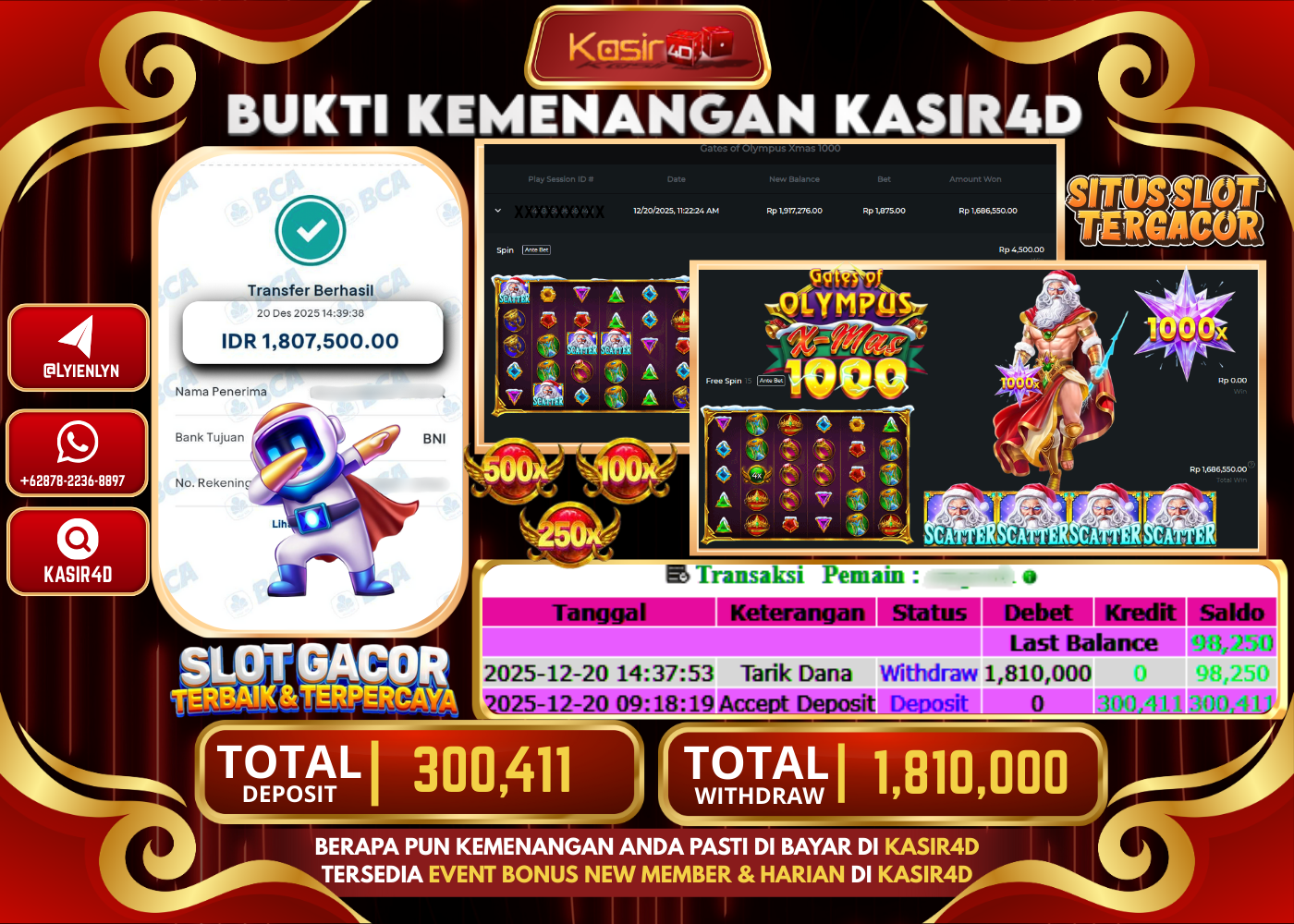 KASIR4D, Selamat Kepada User Id : ZO ***** RO90 Atas Withdraw Hari ini Tgl 20 Desember 2025Rp.1.810.000 Di Game PRAGMATIC PLAY…