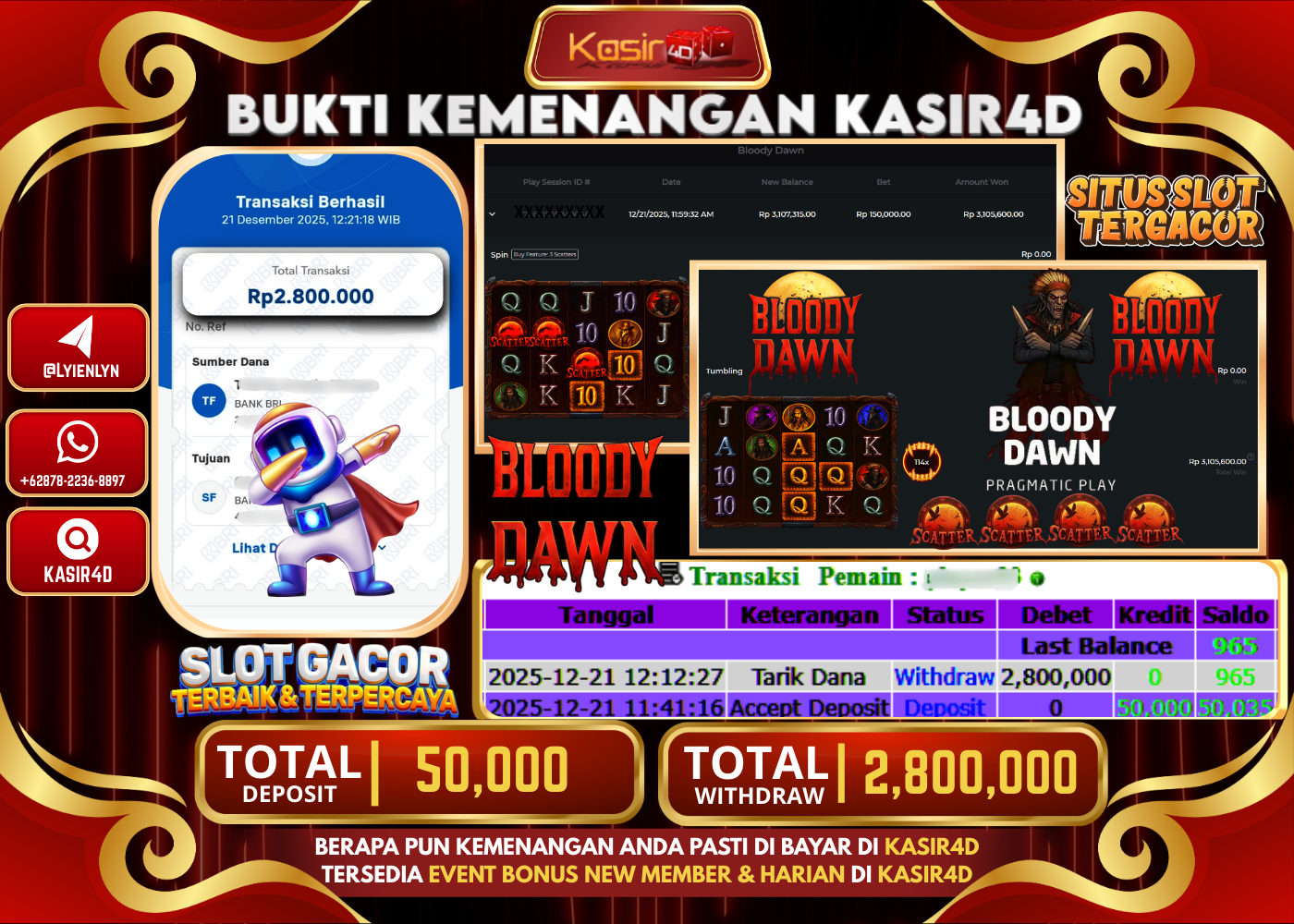 KASIR4D, Selamat Kepada User Id : HO ***** TLAN Atas Withdraw Hari ini Tgl 22 Desember 2025Rp. 8.000.000 Di Game LIVE…