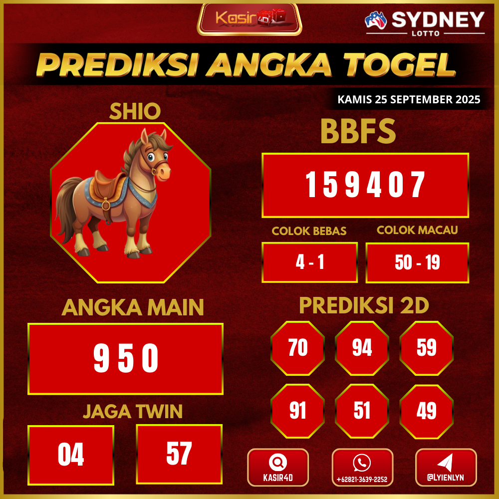 • Prediksi Togel Sydney 25 September 2025 Kasir4d hadir untuk memberikan panduan lengkap angka jitu hari ini. Pertama-tama, Anda akan menemukan…