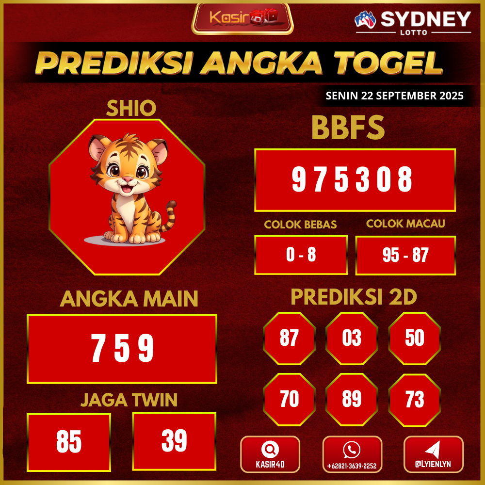• Prediksi Togel Sydney 22 September 2025 Kasir4d hadir untuk memberikan panduan lengkap angka jitu hari ini. Pertama-tama, Anda akan menemukan…