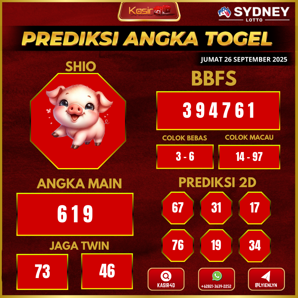 • Prediksi Togel Sydney 26 September 2025 Kasir4d hadir untuk memberikan panduan lengkap angka jitu hari ini. Pertama-tama, Anda akan menemukan…