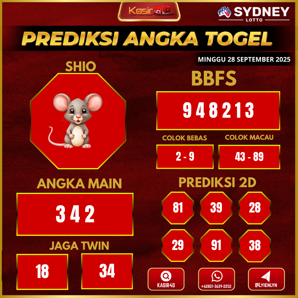 • Prediksi Togel Sydney 28 September 2025 Kasir4d hadir untuk memberikan panduan lengkap angka jitu hari ini. Pertama-tama, Anda akan menemukan…