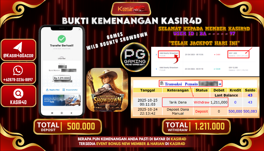 KASIR4D, Selamat Kepada User Id : Be******87 Atas Withdraw Hari ini Tgl 20 Juli 2025 Rp. 2,000,000 Di Game Pragmatic Play…