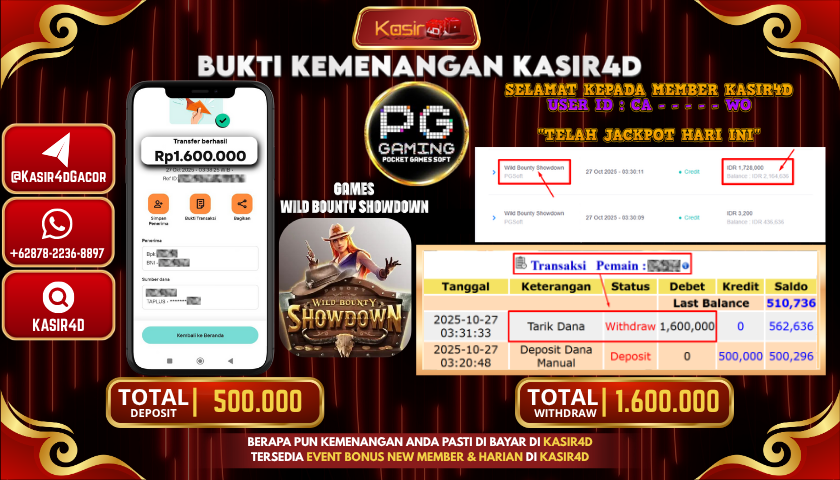 KASIR4D, Selamat Kepada User Id : Ri*****ns Atas Withdraw Hari ini Tgl 26 Agustus 2025Rp. 4,000,000 Di Game PG SOFT WILD…