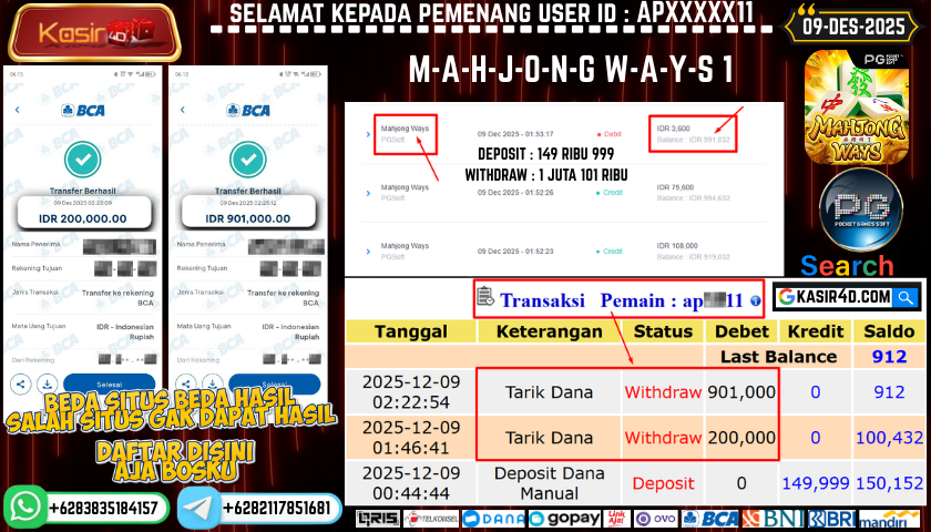 KASIR4D, Selamat Kepada User Id : AD**LWithdraw Hari ini Tgl 20 Agustus 2025 Rp. 20.000.000 Di Game PG SOFT MAHJONG WAYS 2 INFORMASI…